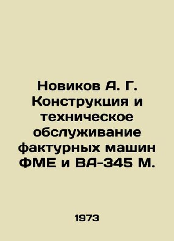 Novikov A. G. Design and maintenance of FME and VA-345 M invoicing machine In Russian /Novikov A. G. Konstruktsiya i tekhnicheskoe obsluzhivanie fakturnykh mashin FME i VA-345 M. Moscow. Statistics. 1973. We have thousands of titles and often several copies of each title may be available. Please feel free to contact us for a detailed description of the copies available. SKUalb05bba061913bd952.