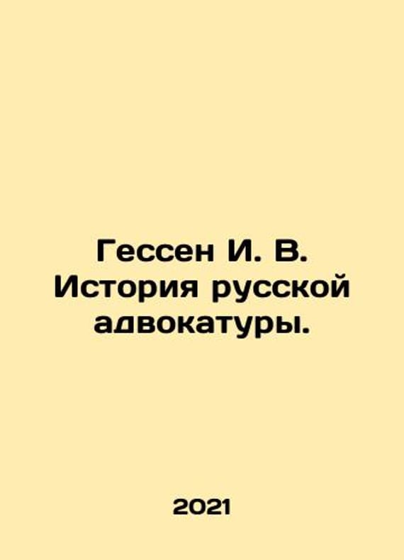 Hesse I. V. History of the Russian Bar. In Russian /Gessen I. V. Istoriya russkoy advokatury. Series: Gift Editions. Imperial Russian Library. Moscow, Eksmo, 2021, 544 p.We have thousands of titles and often several copies of each title may be available. Please feel free to contact us for a detailed description of the copies available.SKUalb05bd0ca870c8d514.