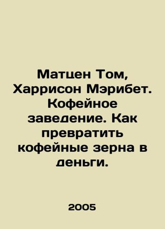 Matzen Tom, Harrison Marybeth. A coffee place. How to turn coffee beans into money. In Russian /Mattsen Tom, Kharrison Meribet. Kofeynoe zavedenie. Kak prevratit kofeynye zerna v dengi. Series: How to Create Your Business. M. Alpina Publisher. 2005-2006. 250 p.We have thousands of titles and often several copies of each title may be available. Please feel free to contact us for a detailed description of the copies available.SKUalb064522932da2952f.