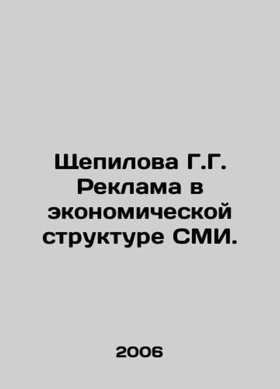 Shchepilova G.G. Advertising in the Economic Structure of Mass Media. In Russian /Shchepilova G.G. Reklama v ekonomicheskoy strukture SMI. Series: Economics and Media Management (Faculty of Journalism, Lomonosov Moscow State University) M MediaWorld 2006.We have thousands of titles and often several copies of each title may be available. Please feel free to contact us for a detailed description of the copies available. SKUalb0650466ef03cfd1d.