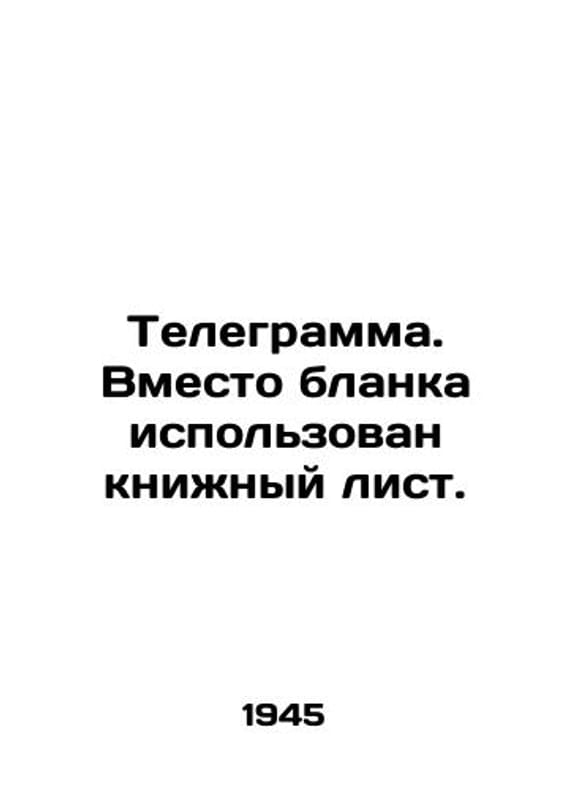 Telegram. A book sheet is used instead of a form. In Russian /Telegramma. Vmesto blanka ispolzovan knizhnyy list. Leningrad-Belgrade Dniester. January 1945 Leningrad 1945 14.5x11 sm.We have thousands of titles and often several copies of each title may be available. Please feel free to contact us for a detailed description of the copies available.SKUalb065199768203b010.