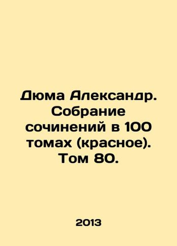Dumas Alexander. A collection of works in 100 volumes (red). Volume 80. In Russian /Dyuma Aleksandr. Sobranie sochineniy v 100 tomakh (krasnoe). Tom 80. Moscow Art-Business Center 2013. 736 p.We have thousands of titles and often several copies of each title may be available. Please feel free to contact us for a detailed description of the copies available.SKUalb065c517cf67e409e.