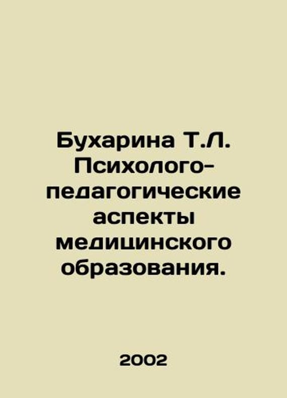 Bukharina T.L. Psychological and pedagogical aspects of medical education. In Russian /Bukharina T.L. Psikhologo-pedagogicheskie aspekty meditsinskogo obrazovaniya. Ekaterinburg Ural Branch of Russian Academy of Sciences 2002. 405 p.We have thousands of titles and often several copies of each title may be available. Please feel free to contact us for a detailed description of the copies available.SKUalb067a2ac3af9fc09b.