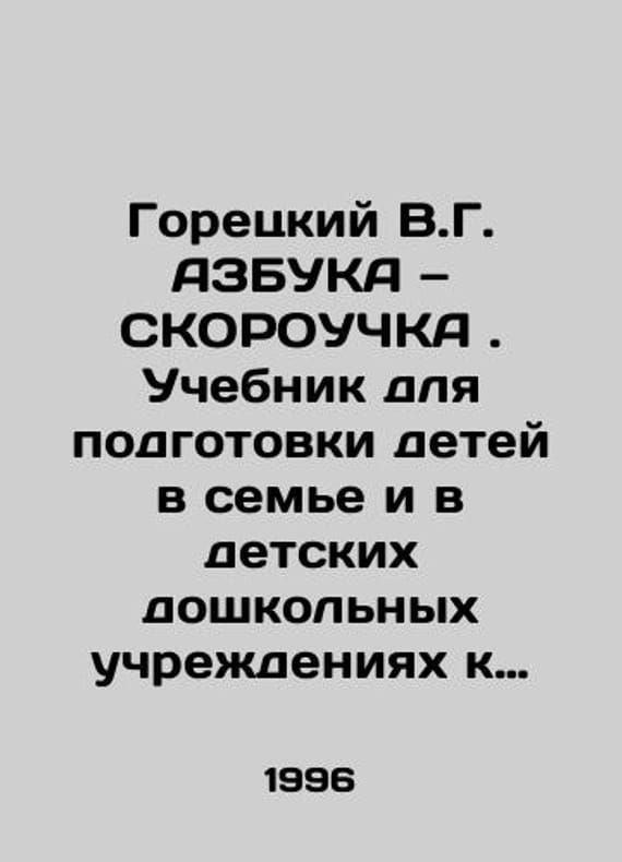 Goretsky V.G. AZBUKA SKOROUCHKA. A textbook for preparing children in the family and preschool institutions for school. In Russian /Goretskiy V.G. AZBUKA SKOROUChKA. Uchebnik dlya podgotovki detey v seme i v detskikh doshkolnykh uchrezhdeniyakh k shkole. Artist E. Matusevich. M. Media-press. 1996. We have thousands of titles and often several copies of each title may be available. Please feel free to contact us for a detailed description of the copies available. SKUalb068eb800e31d2d56.