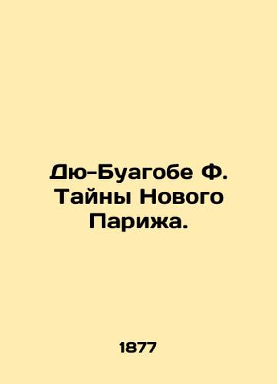 Du Boisgobe F. The Mysteries of New Paris. In Russian (ask us if in doubt)/Dyu-Buagobe F. Tayny Novogo Parizha. Short description: In Russian (ask us if in doubt).Edition by E.N. Akhmatova in St. Petersburg: E.N. Akhmatovas Printing House 1877. 868s. We have thousands of titles and often several copies of each title may be available. Please feel free to contact us for a detailed description of the copies available. SKUalb06b86f162fe8547b