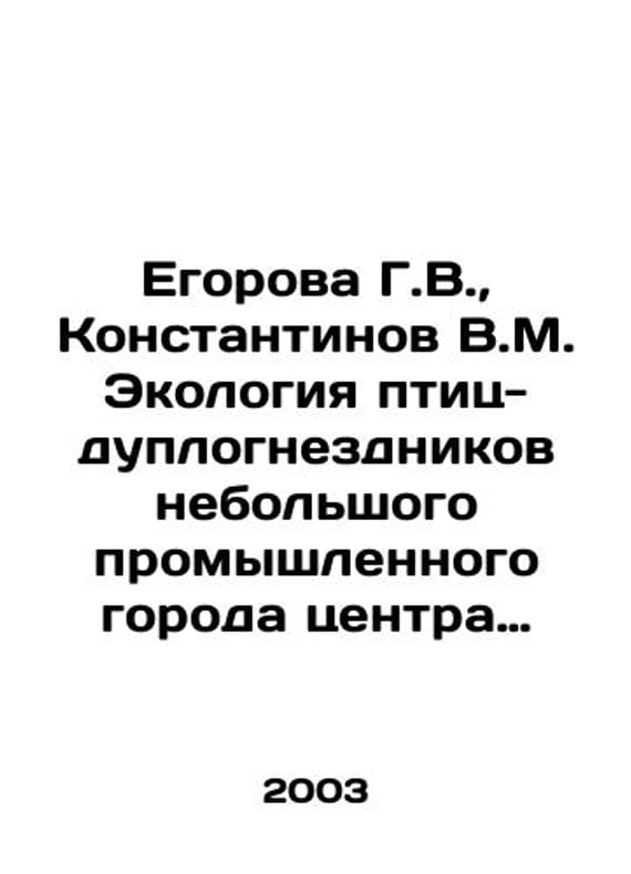 Egorova G.V., Konstantinov V.M. Ecology of bird-nests in a small industrial city in the center of European Russia. In Russian /Egorova G.V., Konstantinov V.M. Ekologiya ptits-duplognezdnikov nebolshogo promyshlennogo goroda tsentra Evropeyskoy Rossii.Moscow 2003.We have thousands of titles and often several copies of each title may be available. Please feel free to contact us for a detailed description of the copies available. SKUalb073c18db65a3fcb2.