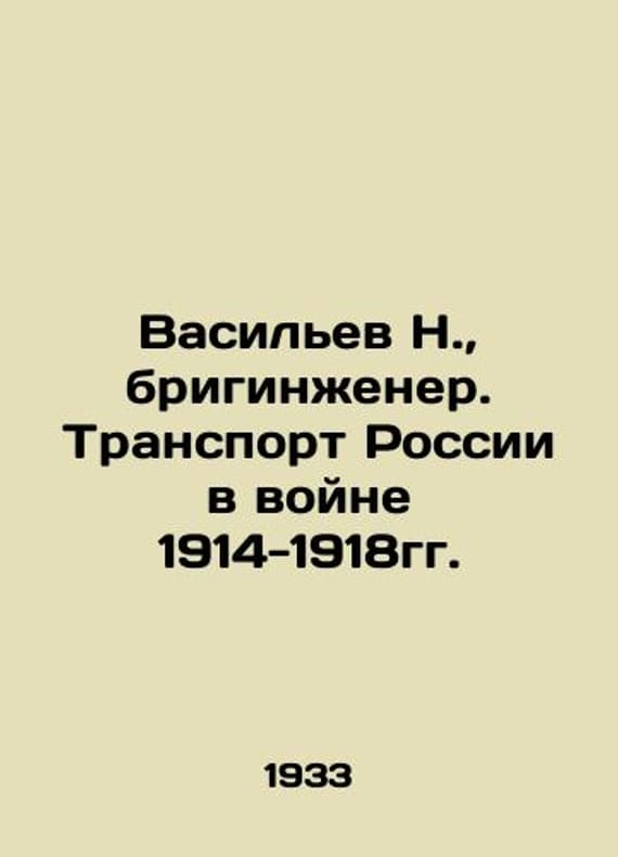 Vasiliev N., Brigengineer. Transport of Russia in the War of 1914-1918. In Russian /Vasilev N., briginzhener. Transport Rossii v voyne 1914-1918gg. M Voizdat 1933. 260s.We have thousands of titles and often several copies of each title may be available. Please feel free to contact us for a detailed description of the copies available.SKUalb07a297907e59f9a3.