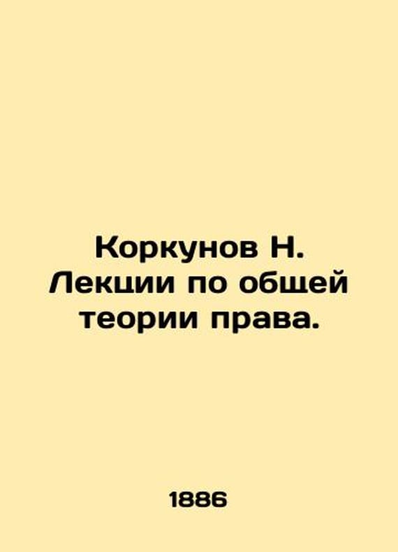 N. Korkunov Lectures on General Theory of Law. In Russian (ask us if in doubt)/Korkunov N. Lektsii po obshchey teorii prava.Korkunov Nikolai Mikhailovich (1853-1904) Russian legal scholar philosopher of law. Professor specialist In state and In ternational law. Taught at St. Petersburg University Military Law Academy and other educational In stitutions. Developed a sociological direction In jurisprudence. SKUalb07d7d479b611c045.