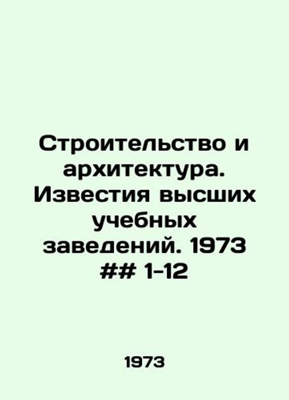 Construction and Architecture. Proceedings of Higher Education Institutions. 1973 # # 1-12 In Russian /Stroitelstvo i arkhitektura. Izvestiya vysshikh uchebnykh zavedeniy. 1973 ## 1-12 Novosibirsk. Publishing House of the Kuibyshev Institute. 1973. Filed under: Construction Structures: Theory of Engineering Structures: Architecture: Building Materials and Products: Economics and Organization of Construction: Hydrotechnical Construction: Sanitary Engineering: Construction of Roads and Bridges: Construction and Road Machines: Scientific and Methodological Section: In Higher Education Laboratories: Reviews: Abstracts.We have thousands of titles and often several copies of each title may be available. Please feel free to contact us for a detailed description of the copies available.SKUalb08004f23ce6192ba.