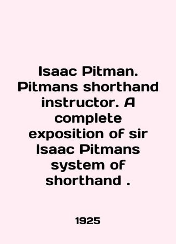 Isaac Pitman. Pitmans shortand instructor. A complete exposition of Sir Isaac Pitmans system of shortand. In English /Isaac Pitman. Pitmans shorthand instructor. A complete exposition of sir Isaac Pitmans system of shorthand. New Era Edition. London Pitman and sons. 1925. We have thousands of titles and often several copies of each title may be available. Please feel free to contact us for a detailed description of the copies available. SKUalb085024952f279c74.