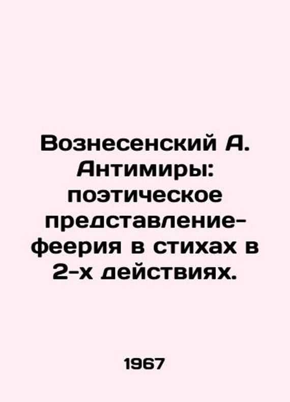 Voznesensky A. Antiworlds: a poetic performance-extravaganza in verse in two acts. In Russian /Voznesenskiy A. Antimiry: poeticheskoe predstavlenie-feeriya v stikhakh v 2-kh deystviyakh. Rotary Edition. M. Department of Distribution of Dramatic Works of the HUOA 1967. We have thousands of titles and often several copies of each title may be available. Please feel free to contact us for a detailed description of the copies available. SKUalb08506bc4b7ca4ff9.