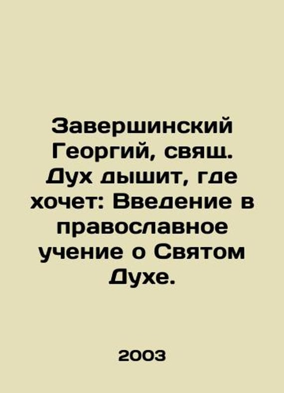 St. George of Zakershin, the Holy Spirit breathes where he wants: An Introduction to Orthodox Teaching about the Holy Spirit. In Russian /Zavershinskiy Georgiy, svyashch. Dukh dyshit, gde khochet: Vvedenie v pravoslavnoe uchenie o Svyatom Dukhe. The Byzantine Library Series. St. Petersburg. Aletheia. 2003. 254 p.We have thousands of titles and often several copies of each title may be available. Please feel free to contact us for a detailed description of the copies available.SKUalb087176f168bf3ecb.