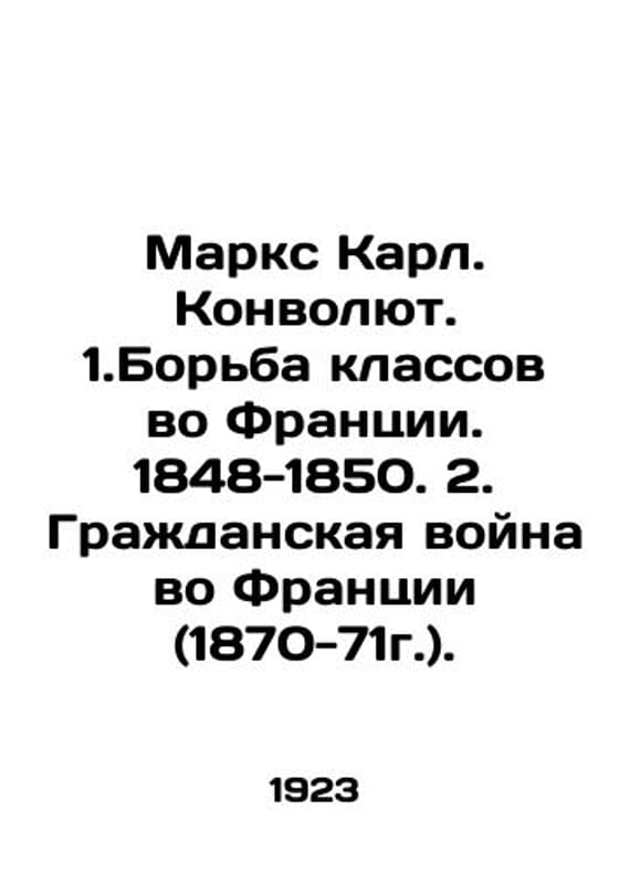Marx Karl Convolutee. 1. Class struggle in France. 1848-1850. 2. The French Civil War (1870-71). In Russian /Marks Karl. Konvolyut. 1.Borba klassov vo Frantsii. 1848-1850. 2. Grazhdanskaya voyna vo Frantsii (1870-71g.). Translation edited and prefaced by I. Stepanov. M. Krasnaya Novi. 1923. We have thousands of titles and often several copies of each title may be available. Please feel free to contact us for a detailed description of the copies available. SKUalb087ac7b807bddd6f.