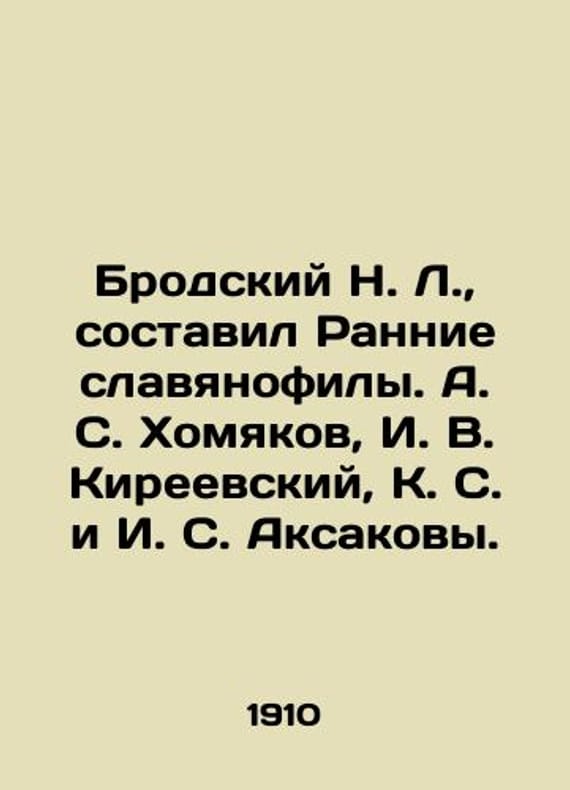 Brodsky N. L., compiled by Early Slavophiles. A. S. Khomyakov, I. V. Kireevsky, K. S., and I. S. Aksakov. In Russian /Brodskiy N. L., sostavil Rannie slavyanofily. A. S. Khomyakov, I. V. Kireevskiy, K. S. i I. S. Aksakovy. M. 1910. We have thousands of titles and often several copies of each title may be available. Please feel free to contact us for a detailed description of the copies available. SKUalb08821b336b0ea9fc.