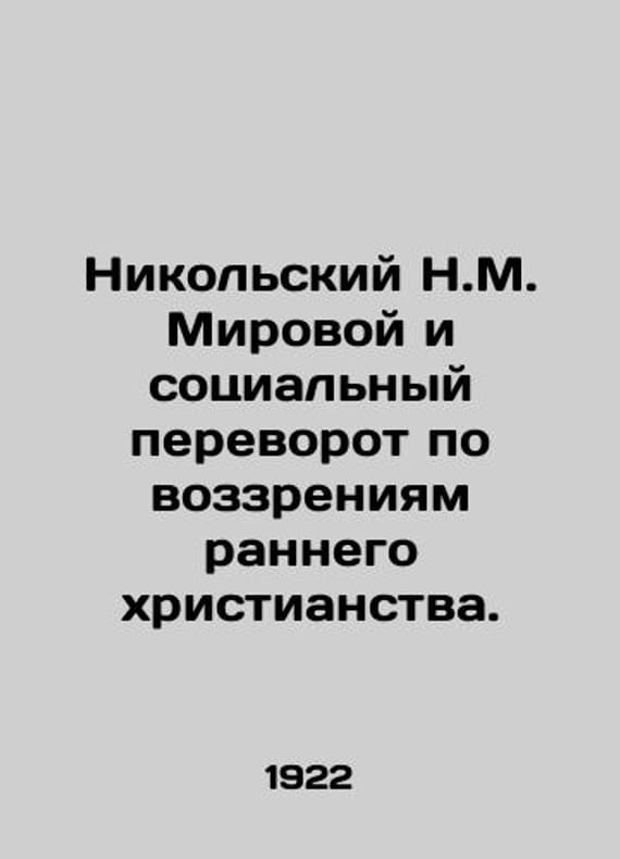 Nikolsky N.M. The World and Social Revolution of Early Christianity. In Russian /Nikolskiy N.M. Mirovoy i sotsialnyy perevorot po vozzreniyam rannego khristianstva. Series: Scientific Review # 4 M. Publication of the 1922 Partnership of the World. We have thousands of titles and often several copies of each title may be available. Please feel free to contact us for a detailed description of the copies available. The delivery of this book might be delayed beyond the usual timeframe due to extended processing and preparation before shipment, and faster shipping opSKUalb08a92e49e7501b49
