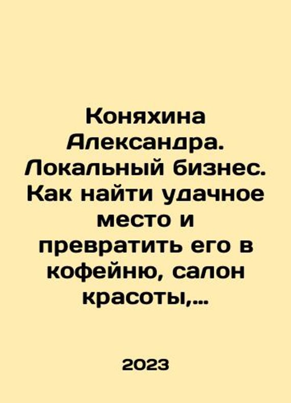 Aleksandra Konyakhina. Local business. How to find a good place and turn it into a coffee shop, beauty salon, winery or other business In Russian /Konyakhina Aleksandra. Lokalnyy biznes. Kak nayti udachnoe mesto i prevratit ego v kofeynyu, salon krasoty, vinoteku ili drugoe delo Series: This is my business Book on how to open M. Bombora 2023 240s.We have thousands of titles and often several copies of each title may be available. Please feel free to contact us for a detailed description of the copies available.SKUalb09546bc2cec000dd.