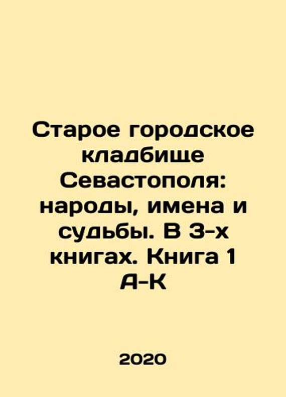 Sevastopols Old City Cemetery: Peoples, Names and Fates. In 3 Books. Book 1 A-K In Russian /Staroe gorodskoe kladbishche Sevastopolya: narody, imena i sudby. V 3-kh knigakh. Kniga 1 A-K O.A. Malinovskaya, E.V. Efimov, V.V. Peasyannikov: under the general editorship of O.I. Malinovskaya. Simferopol, Antikva 2020448 s.We have thousands of titles and often several copies of each title may be available. Please feel free to contact us for a detailed description of the copies available.SKUalb0959a9d46802dc62.