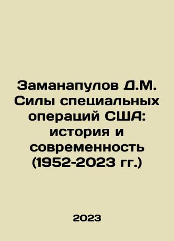Zamanapoulov D.M. US Special Operations Forces: Past and Present (1952-2023) In Russian /Zamanapulov D.M. Sily spetsialnykh operatsiy SShA: istoriya i sovremennost (1952 2023 gg.) Moscow All World 2023. 232 p.We have thousands of titles and often several copies of each title may be available. Please feel free to contact us for a detailed description of the copies available.SKUalb0989238c68b20b34.