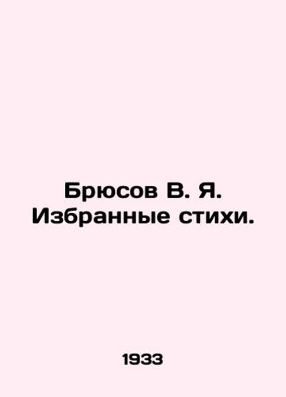 Bryusov V.Ya. Selected poems. In Russian /Bryusov V. Ya. Izbrannye stikhi. Russian fiction. Moscow-Leningrad Academia 1933. 746 p.We have thousands of titles and often several copies of each title may be available. Please feel free to contact us for a detailed description of the copies available.SKUalb099b740185251924.
