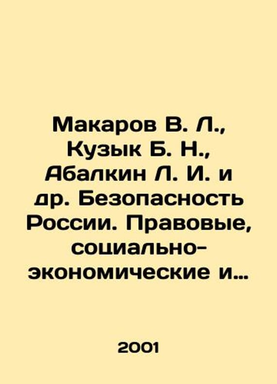 Makarov V. L., Kuzyk B. N., Abalkin L. I. et al. Security of Russia. Legal, socio-economic, scientific and technical aspects. Regional security problems. Krasnoyarsk Krai. In Russian /Makarov V. L., Kuzyk B. N., Abalkin L. I. i dr. Bezopasnost Rossii. Pravovye, sotsialno-ekonomicheskie i nauchno-tekhnicheskie aspekty.Regionalnye problemy bezopasnosti.Krasnoyarskiy kray. Authors collective: A.I. Lebed, G.I. Mikichura.A.E. Lychkovsky, S.P.Voronov, A.A.Lepepepepepepepepelev, V.F.Shabanov, N.A.MakhutovK.V.Frolov, and Dr.Tir.1000 copy Moscow. MGF Znanie. 2001. 576 p.We have thousands of titles and often several copies of each title may be available. Please feel free to contact us for a detailed description of the copies available.SKUalb09b856359ea7ed4f.