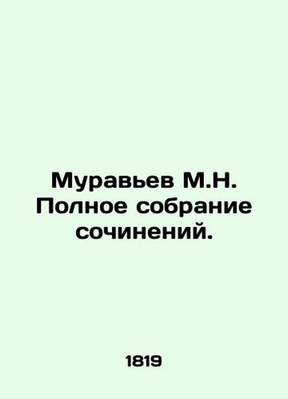 Ant M.N. Complete collection of essays. In Russian (ask us if in doubt)/Murav'ev M.N. Polnoe sobranie sochineniy. Short description: In Russian (ask us if in doubt).Part Two of the St. Petersburg Type of the Russian Academy of 1819. 404s. We have thousands of titles and often several copies of each title may be available. Please feel free to contact us for a detailed description of the copies available. SKUalb09fa7d9572175b55