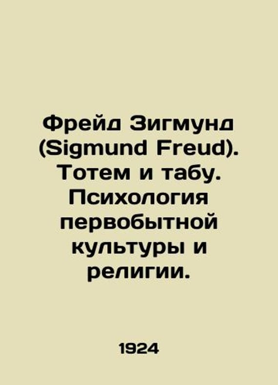 Sigmund Freud. Totem and Taboo. Psychology of Primitive Culture and Religion. In Russian (ask us if in doubt)/Freyd Zigmund (Sigmund Freud). Totem i tabu. Psikhologiya pervobytnoy kul'tury i religii. Series: Psychological and Psychoanalytical Library. Edited by Prof. Ermakov. Translated by Dr. M. V. Wolf c. G. Weisberg. Issue VI. State Publishing House 1924. 170c. SKUalb0a00fed5da79f03f.