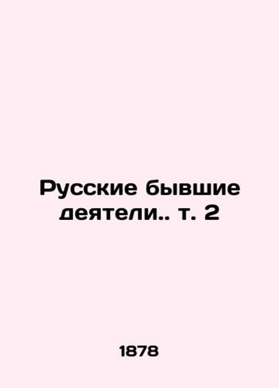 Russian former figures. vol. 2 In Russian /Russkie byvshie deyateli. t. 2 Bauman A. O. 1878. 183s. We have thousands of titles and often several copies of each title may be available. Please feel free to contact us for a detailed description of the copies available. SKUalb0a254d6faf58e34a.