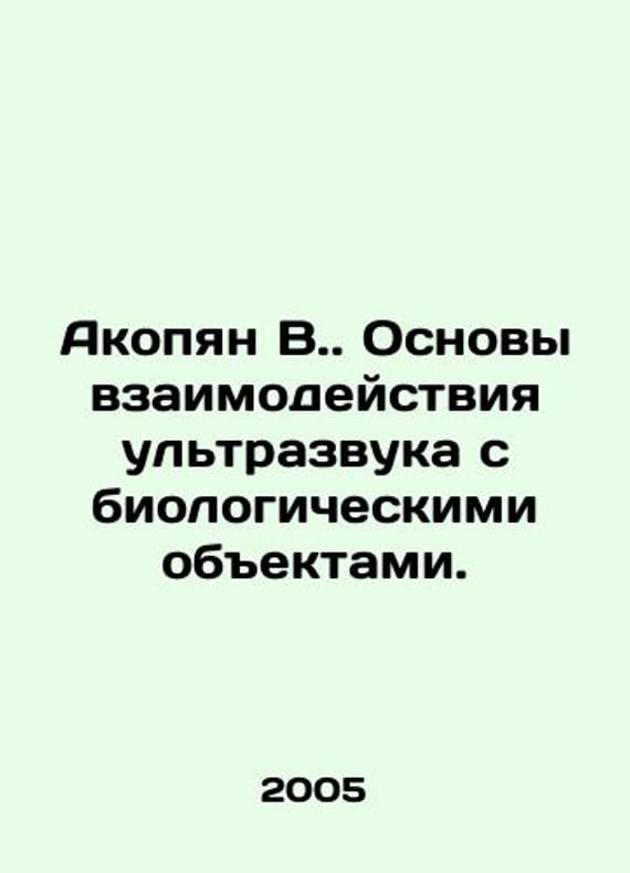 Hakobyan V. Fundamentals of ultrasound interaction with biological objects. In Russian /Akopyan V. Osnovy vzaimodeystviya ultrazvuka s biologicheskimi obektami.M. Izd.MSTU named after N.E.Bauman 2005.We have thousands of titles and often several copies of each title may be available. Please feel free to contact us for a detailed description of the copies available. SKUalb0a2b0b15bdb3c463.