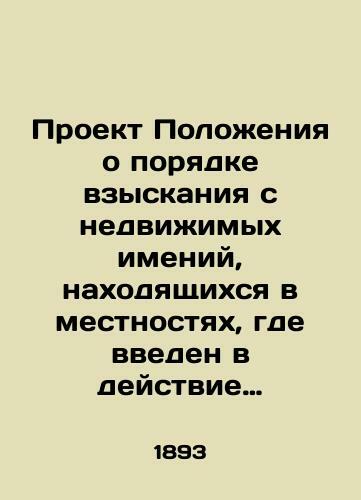 Draft Regulation on the Procedure for Recovery from Immovable Estates Located in Localities where the Charter of the Patriarch is Enacted and Explanatory Note to the Project In Russian (ask us if in doubt)/Proekt Polozheniya o poryadke vzyskaniya s nedvizhimykh imeniy nakhodyashchikhsya v mestnostyakh gde vveden v deystvie Votchinnyy ustav i Obyasnitel'naya k semu Proektu zapiska Short description: In Russian (ask us if in doubt).Publication of the Department of Payments of St. Petersburg. State Type. 1893. 4 356 + 38 + 92 p. We have thousands of titles and often several copies of each title may be available. Please feel free to contact us for a detailed description of the copies available. SKUalb0a52105920e7b2cc