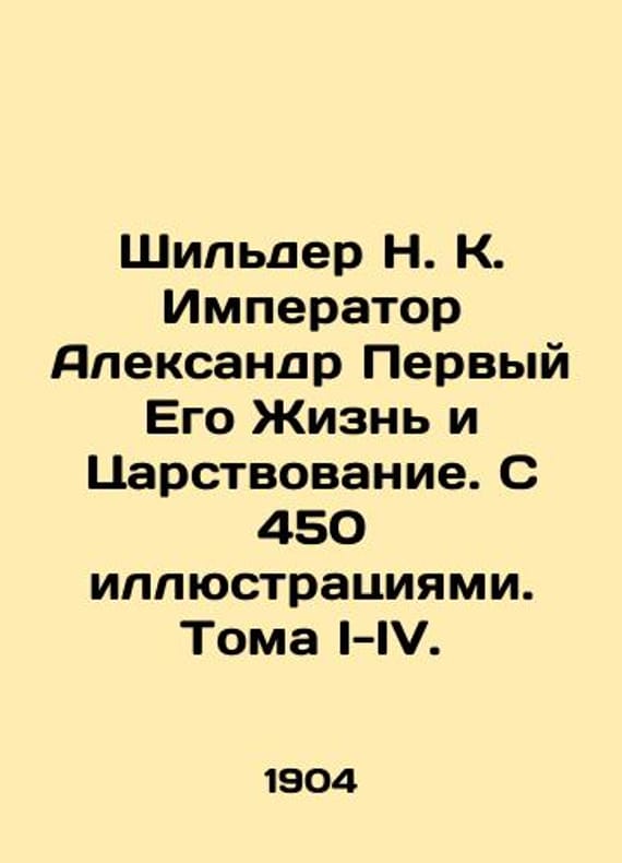 Schilder N. K. The Emperor Alexander the First His Life and Kingdom. With 450 illustrations. Volumes I-IV. In Russian /Shilder N. K. Imperator Aleksandr Pervyy Ego Zhizn i Tsarstvovanie. S 450 illyustratsiyami. Toma I-IV. S-Pb. 1904-1905, Encyclopedic. Edition 2. We have thousands of titles and often several copies of each title may be available. Please feel free to contact us for a detailed description of the copies available. SKUalb0a6db04d9dcaf286.