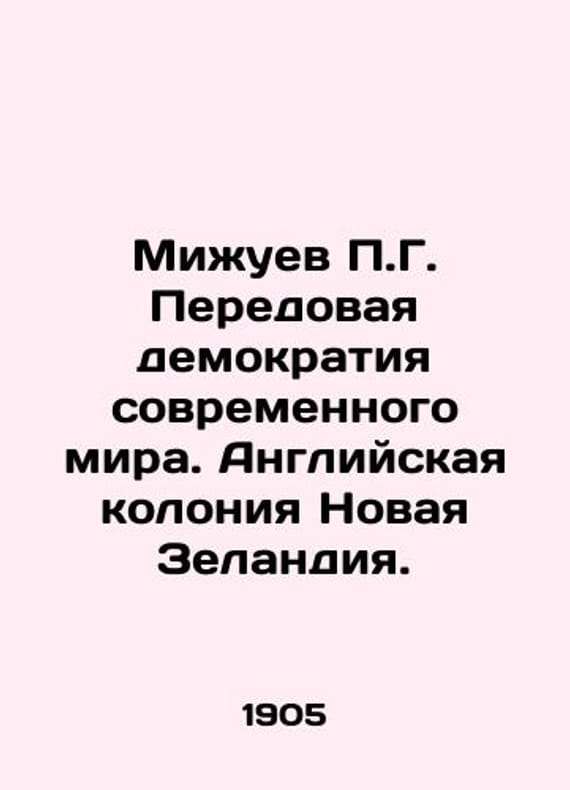 Mizhuev G. The advanced democracy of the modern world. English colony New Zealand. In Russian /Mizhuev G. Peredovaya demokratiya sovremennogo mira. Angliyskaya koloniya Novaya Zelandiya. Editions 3. St. Petersburg. Editions by G. F. Lvovich. We have thousands of titles and often several copies of each title may be available. Please feel free to contact us for a detailed description of the copies available. SKUalb0b21fd1379983310.