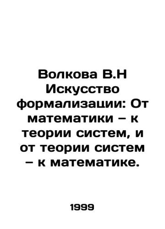 Volkova V.N The Art of Formalization: From Mathematics to Systems Theory, and from Systems Theory to Mathematics. In Russian /Volkova V.N Iskusstvo formalizatsii: Ot matematiki k teorii sistem, i ot teorii sistem k matematike. St. Petersburg State Technical University 1999 200s.We have thousands of titles and often several copies of each title may be available. Please feel free to contact us for a detailed description of the copies available.SKUalb0b32d8517765bc62.
