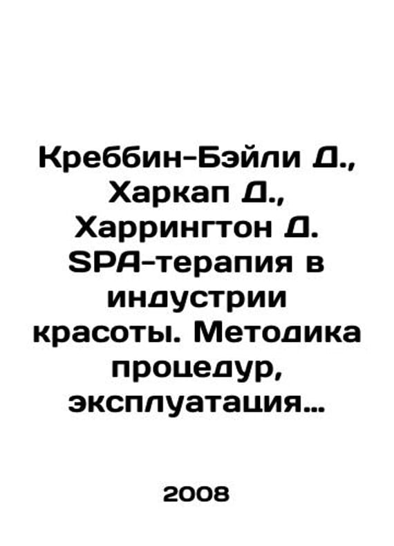 Crabbin-Bailey D., Harcap D., Harrington D. SPA-therapy in the beauty industry. Methodology of procedures, operation of equipment, SPA-management training programs In Russian /Krebbin-Beyli D., Kharkap D., Kharrington D. SPA-terapiya v industrii krasoty. Metodika protsedur, ekspluatatsiya oborudovaniya, programmy obucheniya SPA-menedzhmentu M RIPOL Classic 2008. 304s.We have thousands of titles and often several copies of each title may be available. Please feel free to contact us for a detailed description of the copies available.SKUalb0b9d264c4291b23b.