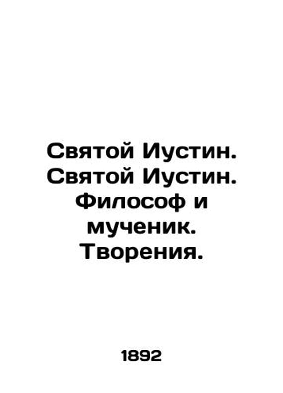 Saint Justin. Saint Justin. Philosopher and Martyr. Creation. In Russian /Svyatoy Iustin. Svyatoy Iustin. Filosof i muchenik. Tvoreniya. Library of Fathers and Teachers of the Church series. Reprinted from 1892 M Pilgrimage. 1995. 486 p. We have thousands of titles and often several copies of each title may be available. Please feel free to contact us for a detailed description of the copies available. SKUalb0bba9d9d5534798d.