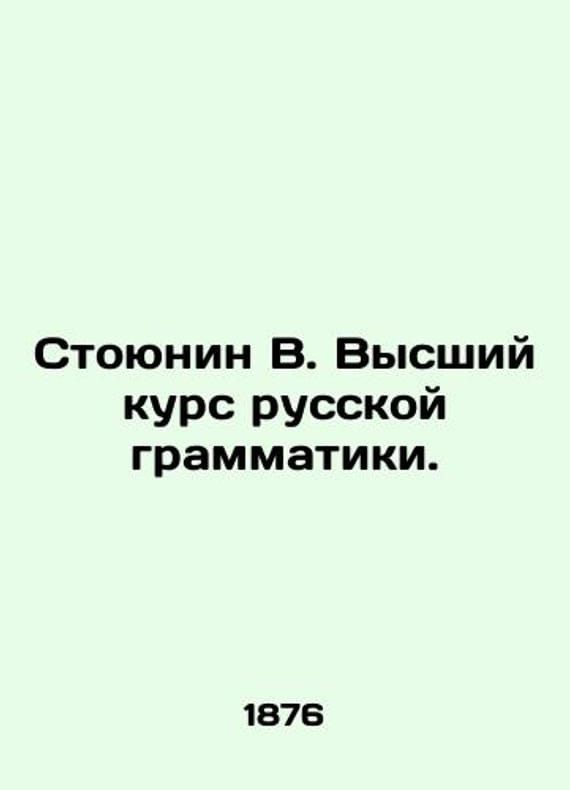 Stoyunin V. Higher Course of Russian Grammar. In Russian /Stoyunin V. Vysshiy kurs russkoy grammatiki. 3rd edition. St. Petersburg. Isakov Edition Ya.A. 1876. 178s.We have thousands of titles and often several copies of each title may be available. Please feel free to contact us for a detailed description of the copies available.SKUalb0bd6ec51d09aa5c4.