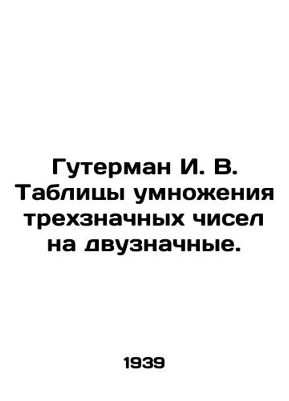 Guterman I. V. Tables for multiplying three digits by two digits. In Russian /Guterman I. V. Tablitsy umnozheniya trekhznachnykh chisel na dvuznachnye. M. V.O Soyuztraderchits Office of Settlement Publications. 1939. VIII, 200s.We have thousands of titles and often several copies of each title may be available. Please feel free to contact us for a detailed description of the copies available.SKUalb0be09c850a4f1156.