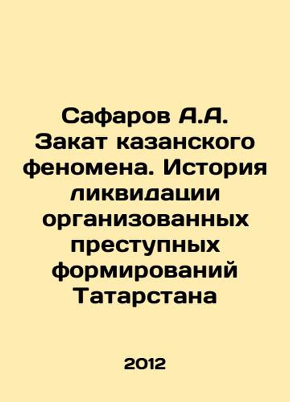 A.A. Safarov The Sunset of the Kazan Phenomenon. The History of the Liquidation of Organized Criminal Forms in Tatarstan In Russian /Safarov A.A. Zakat kazanskogo fenomena. Istoriya likvidatsii organizovannykh prestupnykh formirovaniy Tatarstana Kazan Tatar Book Publishing House 2012.We have thousands of titles and often several copies of each title may be available. Please feel free to contact us for a detailed description of the copies available. SKUalb0bf0a2d551f6176d.