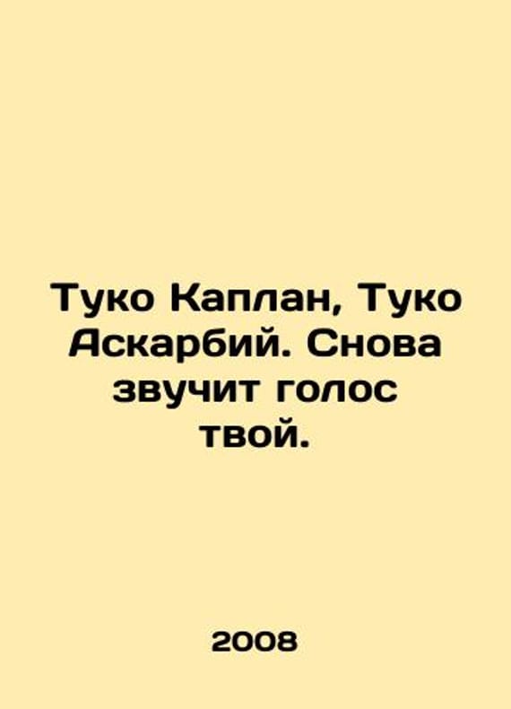 Tuko Kaplan, Tuko Askarbiy, your voice is heard again. In Russian /Tuko Kaplan, Tuko Askarbiy. Snova zvuchit golos tvoy.Maycop Polygraph South 2008.We have thousands of titles and often several copies of each title may be available. Please feel free to contact us for a detailed description of the copies available. SKUalb0c511d33bcb1e284.
