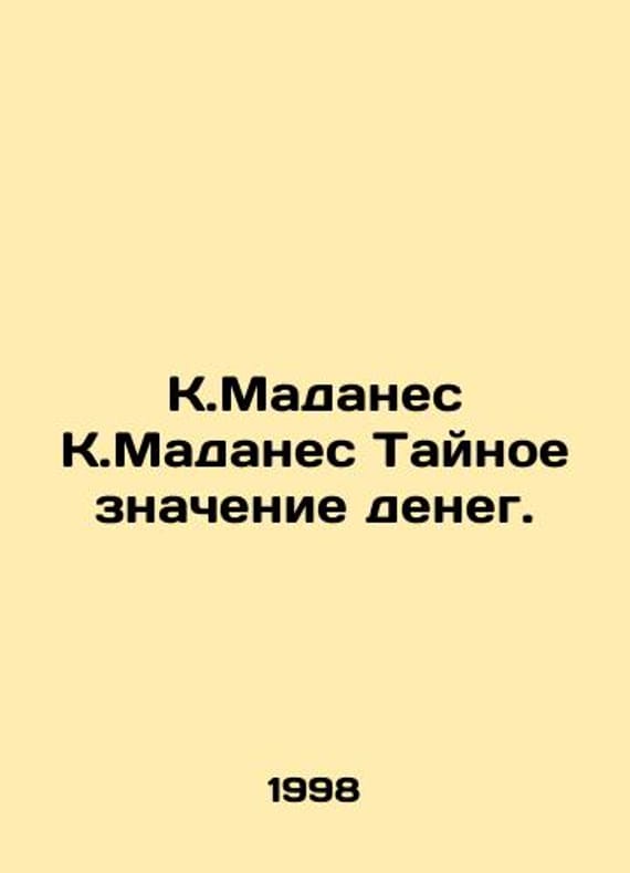 K. Madanes K. Madanes The Secret Meaning of Money. In Russian /K.Madanes K.Madanes Taynoe znachenie deneg. Library of Psychology and Psychotherapy M. Class of 1998. 192 p. We have thousands of titles and often several copies of each title may be available. Please feel free to contact us for a detailed description of the copies available. SKUalb0c7e90a3bd61031f.