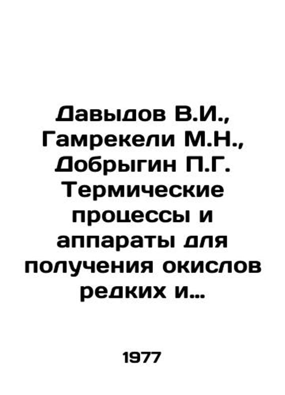 Davydov V.I., Gamrekeli M.N., Dobrygin P.G. Thermal processes and apparatus for obtaining oxides of rare and radioactive metals. In Russian /Davydov V.I., Gamrekeli M.N., Dobrygin P.G. Termicheskie protsessy i apparaty dlya polucheniya okislov redkikh i radioaktivnykh metallov. Edited by Davydov V.I. M. Atomizdat. 1977. 208s.We have thousands of titles and often several copies of each title may be available. Please feel free to contact us for a detailed description of the copies available.SKUalb0c81694862de174b.