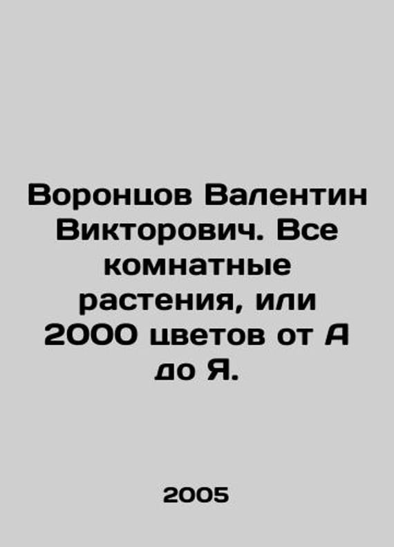 Vorontsov Valentin Viktorovich. All indoor plants, or 2000 flowers from A to I. In Russian /Vorontsov Valentin Viktorovich. Vse komnatnye rasteniya, ili 2000 tsvetov ot A do Ya. Illustrated reference book. M. Fiton. 2005. 472 p.We have thousands of titles and often several copies of each title may be available. Please feel free to contact us for a detailed description of the copies available.SKUalb0c85ad18787de1f3.