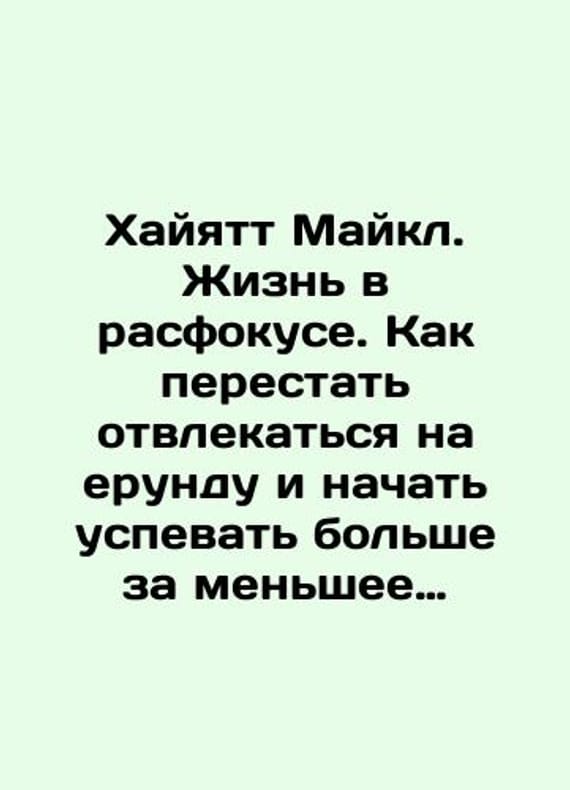 Hyatt Michael. Life in the spotlight. How to stop being distracted by nonsense and start managing more in less time. In Russian /Khayyatt Maykl. Zhizn v rasfokuse. Kak perestat otvlekatsya na erundu i nachat uspevat bolshe za menshee vremya. Bestsellers of Self-Development. Moscow Exmos. 2021. 304 pp.We have thousands of titles and often several copies of each title may be available. Please feel free to contact us for a detailed description of the copies available. SKUalb0cb5946632169203.