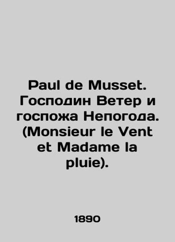 Paul de Musset. Mr. Wind and Mrs. Bad Weather. (Monsieur le Vent et Madame la pluie). In French /Paul de Musset. Gospodin Veter i gospozha Nepogoda. (Monsieur le Vent et Madame la pluie). Tale. Series: Petite collection blanche. In French. With illustrations. Paris. J.Hetzel. 1890. 127c.We have thousands of titles and often several copies of each title may be available. Please feel free to contact us for a detailed description of the copies available.SKUalb0cc74c30d3d3a7ea.