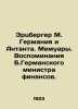 Erzberger M. Germany and the Entente. Memoirs by B. German Minister of Finance. In Russian /Ertsberger M. Germaniya i Antanta. Memuary.Vospominaniya B.Germanskogo ministra finansov. Library of Modern Memoirs. Translation from German by E.Fedotova. Introductory article by V.Kryazhina.The collapse of German imperialism. Moscow-Petrograd. Gosizdat. 1923. We have thousands of titles and often several copies of each title may be available. Please feel free to contact us for a detailed description of the copies available. SKUalb0cce9684f0338e10.