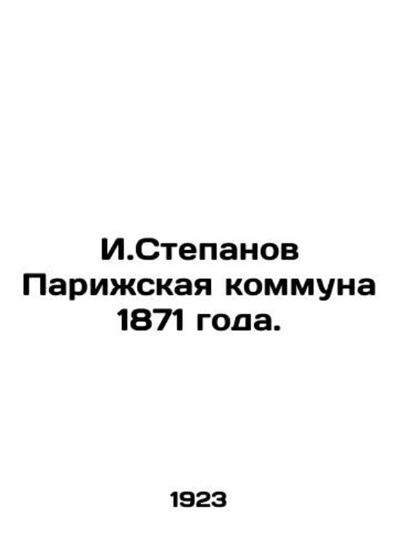 I.Stepanov Paris Commune of 1871. In Russian /I.Stepanov Parizhskaya kommuna 1871 goda. M Publishing House, 1923. We have thousands of titles and often several copies of each title may be available. Please feel free to contact us for a detailed description of the copies available. SKUalb0d09bcecacf6d0cb.