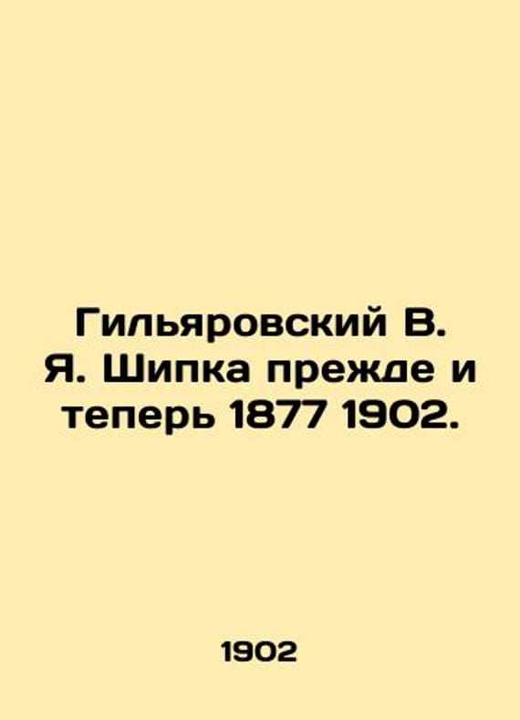 Gilyarovsky V.Ya. Shipka before and now 1877 1902. In Russian (ask us if in doubt)/Gil'yarovskiy V. Ya. Shipka prezhde i teper' 1877 1902. Moscow. I.D. Sytin's Printing House. 1902.68p. We have thousands of titles and often several copies of each title may be available. Please feel free to contact us for a detailed description of the copies available. SKUalb0d1b83250feada35