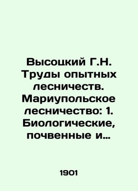 Vysotsky G.N. Works of Experimental Forestry. Mariupol Forestry: 1. Biological, Soil, and Phenological Observations in Veliko-Anadol (1892-93): 2. Forest Crops in Mariupol Experimental Forestry of 1896-1900 In Russian /Vysotskiy G.N. Trudy opytnykh lesnichestv. Mariupolskoe lesnichestvo: 1. Biologicheskie, pochvennye i fenologicheskie nablyudeniya v Veliko-Anadole (1892-93 gg.): 2. Lesnye kultury v Mariupolskom opytnom lesnichestve 1896-1900 gg. Ministry of Agriculture and State Property. Forestry Department. St. Petersburg. Type. Siberian stock of general furnace business in Russia E. Evdokimov 1901. 6, 306, 2, 4, 244, 2 p. We have thousands of titles and often several copies of each title may be available. Please feel free to contact us for a detailed description of the copies available. SKUalb0df538241a1018bd.