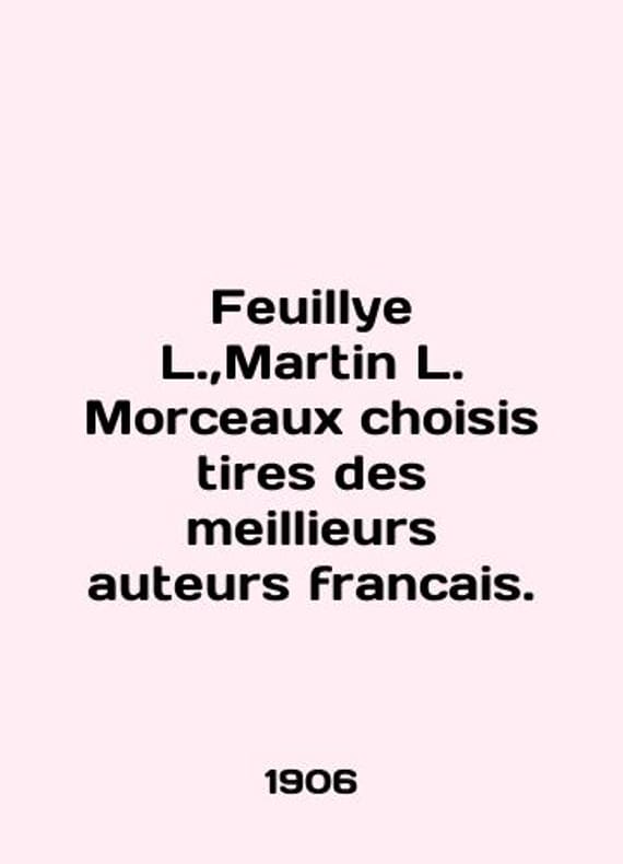 Feuillye L., Martin L. Morceaux choisis tires des meillieurs auteurs francais. In English /Feuillye L., Martin L. Morceaux choisis tires des meillieurs auteurs francais. Avec notices litteraires et vocabulaire. A pleasure of etablissements de leinseignement secondaire. SPB Trenke et Fusnot 1906. We have thousands of titles and often several copies of each title may be available. Please feel free to contact us for a detailed description of the copies available. SKUalb0e03341cabf3fbe0.