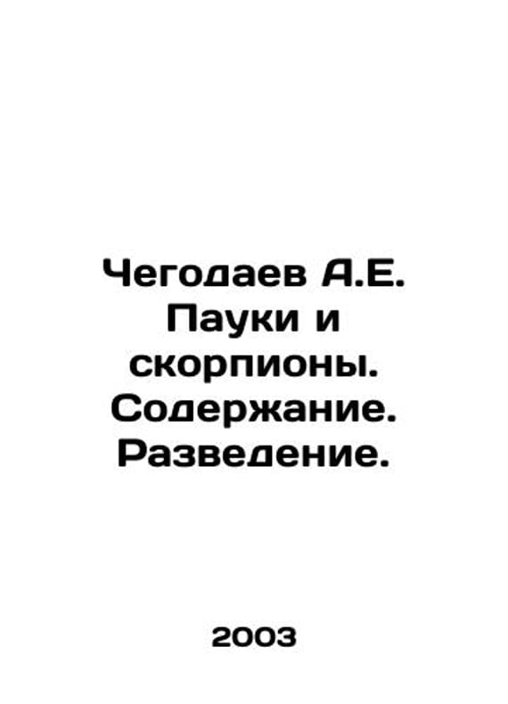 Chegodaev A.E. Spiders and scorpions. Content. Breeding. In Russian /Chegodaev A.E. Pauki i skorpiony. Soderzhanie. Razvedenie.Series: M. Aquarium Home Area 2003.We have thousands of titles and often several copies of each title may be available. Please feel free to contact us for a detailed description of the copies available. SKUalb0e26ea427da5b7ee.