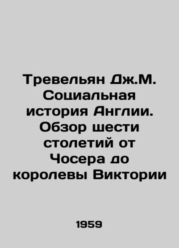 Travelian JM Social History of England: A Review of Six Centuries from Chaucer to Queen Victoria In Russian /Trevelyan Dzh.M. Sotsialnaya istoriya Anglii. Obzor shesti stoletiy ot Chosera do korolevy ViktoriiTranslated from English by A.A. Krushinskaya and K.N.Tatarinova. M. Foreign Literature. 1959.We have thousands of titles and often several copies of each title may be available. Please feel free to contact us for a detailed description of the copies available. SKUalb0e78d0973cc397f1.